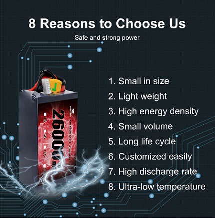 उन्नत ठोस-राज्य टेक्नोलोजीको साथ निर्माण, यो ब्याट्री प्याक अतुलनीय उर्जा घनत्व, सुरक्षा, र टिकाउको कारण प्रदान गर्दछ। चाहे तपाईं हवाई फोटोग्राफी, कृषि, वा सैन्य कन्नसोसाइजका लागि ड्रोनहरू, हाम्रो 2000000mah 30000mah ब्याट्रीले लामो रहन समय र लगातार प्रदर्शन सुनिश्चित गर्दछ।