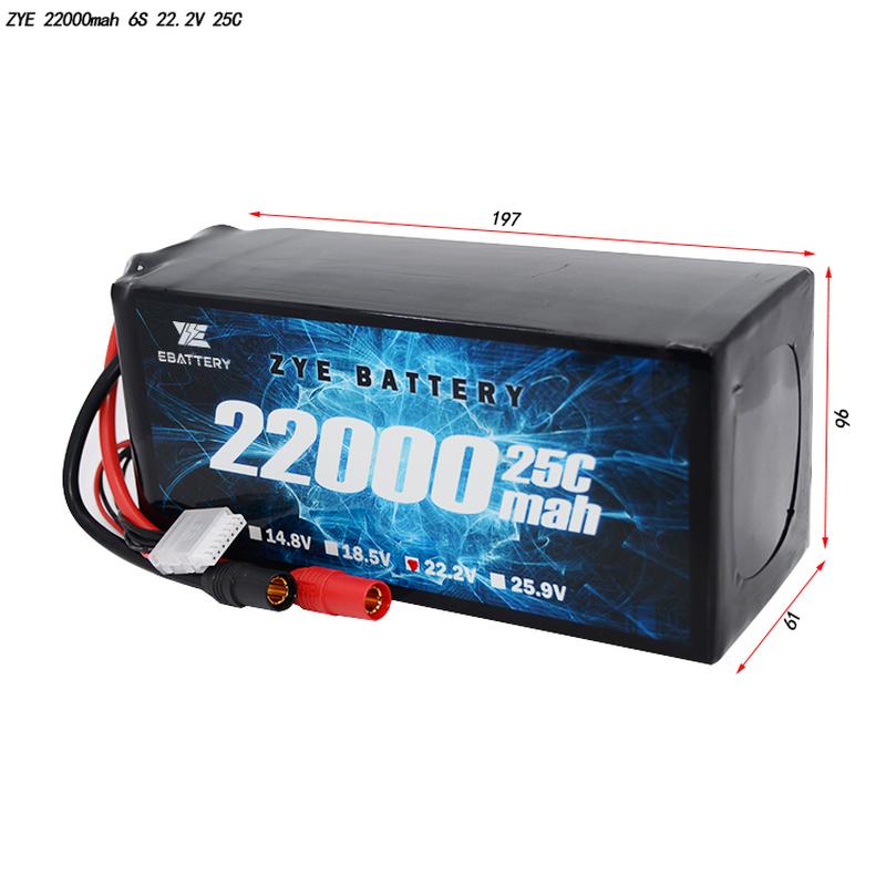 | 22000 मा | 6s 25.2v | 22.2v | 888W | 200 * 91 * * 63 63 | 2.54kg | 264a (12C) | 500a (2CS) |